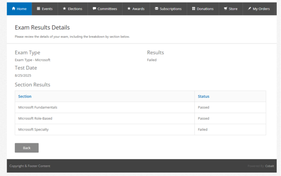 Cobalt 4.1 introduces exam sections and retake limits, giving organizations control over how exams are structured and how candidates can retake failed parts.